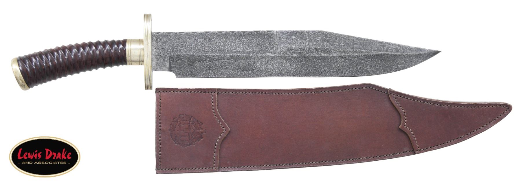 LEWIS DRAKE CUSTOM DAMASCUS BOWIE KNIFE.