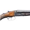 Cal. 16 ga. 2 3/4". S# 1773. Bbls. 26" sleeved. 7 1/2" breech section of twist steel. 18 1/2" forward section is sleeved & fitted replacement bbl. of 5 blade damascus. Reattached sunken rib has mfg name "LINCOLN & JEFFERIES". Breech section of the right bbl. is marked "Winner of the GOLD METAL LONDON 1870." Left breech section is marked "Winner of the FIELD 20 GUINEA PRIZE For Choke Bores LONDON 1870." Water table of the action is marked "ANSON & DEELEY'S / PATENT 5657". Action has 50% coverage of scroll engraving w/ fancy borders. Double triggers. Extractors. Very short 4 3/4" splinter forearm of checkered walnut is marked "WANSON / 23609 / PATENT". Round knob pistol grip stock of checkered English walnut has oval name plate on toeline. LOP: 13 15/16" over grooved horn buttplate. CONDITION: Frame retains over 30% case colors. Floorplate & trigger guard have reblued finish. Refinished stock has lightly worn checkering. Toeline has a filled hole for swivel attachment. Bbls. have a rough gray appearance. Breech section has weakened markings & spots of pitting. Functioning action. Bbls. are slightly off face w/ top lever sitting left of center. Good bores. (01-26575/DS). ANTIQUE. $500-800.