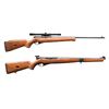 2) MOSSBERG 151M RIFLE. Bbl. 19". Hooded combination front sight. Receiver mounted Mossberg aperture rear sight. Bbl. rear sight slot vacant. Blued finish. Hardwood stock set with bottom mounted sling swivels. CONDITION: stock set has added finish with a couple chips & some handling marks. Metal retains 93% original blue with some edge wear & light fading. Action appears functional when hand cycled. Very good bore. PROVENANCE: Lifelong Collection of Bill Peterken. (24-6069/MJC). BOTH CURIO. $150-250 for lot.