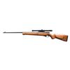 1) MOSSBERG 151K RIFLE. Bbl. 24". Ramped bead front sight. No rear iron sight. Receiver mounted Glenfield 4x15 scope. Scope has fine crosshair reticle with cloudy optics. Left rear of receiver has two vacant sight holes. Blued finish. Hardwood stock. CONDITION: stock has added finish with a synthetic repair on bottom right of wrist, a few dings, a repaired 3" crack at left front of forend & some handling wear. Metal retains 75% original blue with scattered edge wear, fading & light oxidation. Action appears to function when hand cycled. Bore has some light frosting but strong rifling. (24-6067/MJC).