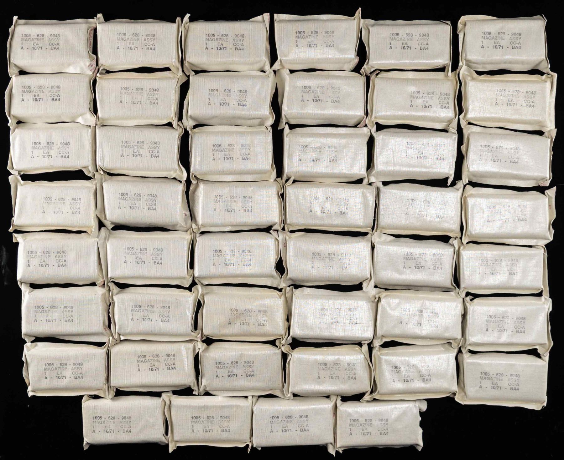 About thirty surplus 20 rd. M1A/M14 mags. Mags are in RAP Industries packaging & mostly sealed. Dates of packaging appears to be 10/71 dated. CONDITION: sealed in wrapping. 02-24590-6/MJC). $600-1000 for lot.