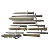 1) US M9 Bayonet. Blade marked "M9 PHROBIS III". Green handles. Green scabbard & frog present. CONDITION: good to very good with some service & usage wear.