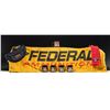 Lot of assorted Federal ammunition memorabilia, including: 1) x1 Federal brown plastic wood grain mug in cardboard box. 2) x1 set of 4 Federal black plastic shotgun shell coffee cups in cardboard box. 3) x1 Federal Gold Medal nylon waist pouch. 4) x1 Federal red cloth hand towel. 5) x1 Federal amber colored fabric table cover with yellow tassels. CONDITION: items are all very good to near new, with most remaining in their apparent original packaging. PROVENANCE: Norman Olliff Estate. (02-25692/MLW). NON-GUN. $20-40.