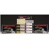 This lot consists of the following ammo: 1) Three 20 rd. boxes of varied Weatherby brand 416 Wby Mag 400 gr. ammo. 2) Three 20 rrd. boxes of Nosler Partition 416 Rem Mag 400 gr ammo. 3) Three 20 rd. boxes of Winchester 416 Rigby 400 gr. Nosler Partition ammo. 4) Four 20 rd. boxes of varied Norma 400 gr. 416 Rigby. CONDITION: some rounds exhibit tarnish, balance of rounds are very good or better. PROVENANCE: The Collection of Gun Sport Ltd owned by Jon R. Thomas. (02-20578/MJC). $1200-1900 for lot.