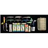 1) 8- Plugs by Creek Chub, Hopkins, Stan Gibbs & Rebel, etc. in plastic bag. CONDITION: good. 2) 1- Canvas covered plastic container holding approx. 10 various casting plugs. CONDITION: good. PROVENANCE: From the Private Collection of Berrien Moore III. (02-25870-14/MGM). $50-100.
