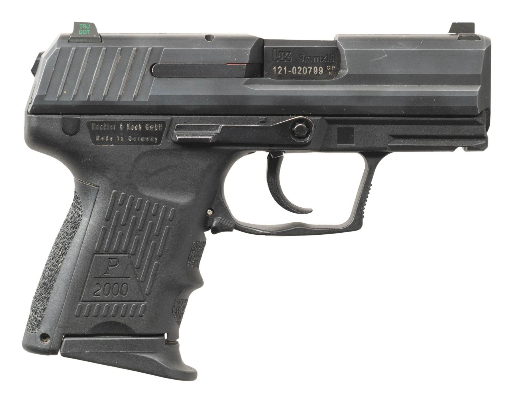2) H&K P2000SK Semi Auto Pistol. S# 121-020799. Bbl. 3 1/4". Tru-Dot night sights. Matte black finish. Polymer frame with accessory rail. MAGS: 3-10 rd. UNATTACHED ACCESSORIES: factory hardcase with spare grip strap. CONDITION: metal & frame show scattered edge wear & handling marks. Action functions properly when hand cycled. Very good bore. (25-5394/MJC). BOTH MODERN. $800-1,200 for lot.