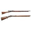 1) Bern M78 Percussion Conversion Rifle. Cal. 45. S# 1 74933. Bbl. 33". Brass blade front sight. Marbles rear sight. Swiss Vetterli converted to percussion muzzle loader with nipple in chamber. Blued finish. Walnut stock set with bottom mounted sling swivels. Ramrod present. CONDITION: stock has added finish with a 2 1/2" crack on rear of forend, scattered handling marks, dings & finish wear. Metal retains 80% blue with scattered oxidation, edge wear, handling marks & fading. Action functions properly when hand cycled. Very good bore with strong rifling. (01-28406/MJC).
