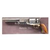 This lot consists of the following Italian repro revolvers both in Cal. 44: 1. REPLICA ARMS 1847 WALKER REVOLVER. S# 4864. Bbl. 9". Brass blade front sight. Case-colored frame and hammer. Cyl. has an engraved western scene. Brass trigger guard and front strap. Smooth hardwood grips. UNATTACHED ACCESSORIES: matching-numbered box with paperwork and two tools; one of the tools appears to be broken. CONDITION: grips show light handling wear. Bbl., loading lever, and cyl. are mostly gray, with some edge wear and light oxidation. Frame and hammer retain strong amounts of case colors with some light oxidation. Trigger guard and front strap show a circular flaking spot and some scattered oxidation. Bore shows scattered frosting but strong rifling. (01-25344/MJC). 2. NAVY ARMS 1860 REVOLVER. S# P56796. Bbl. 8". Brass blade front sight. Case-colored frame, loading lever, trigger, and hammer. Blued bbl., back strap, and cyl. with an engraved naval scene. Brass trigger guard and front strap. Smooth walnut grips. UNATTACHED ACCESSORIES: styrofoam insert in fair condition with an instruction sheet. CONDITION: metal and grips show some scratches with handling and operational wear. Very good bore. (01-25345/MJC). BOTH ANTIQUE. $400-600 for lot.