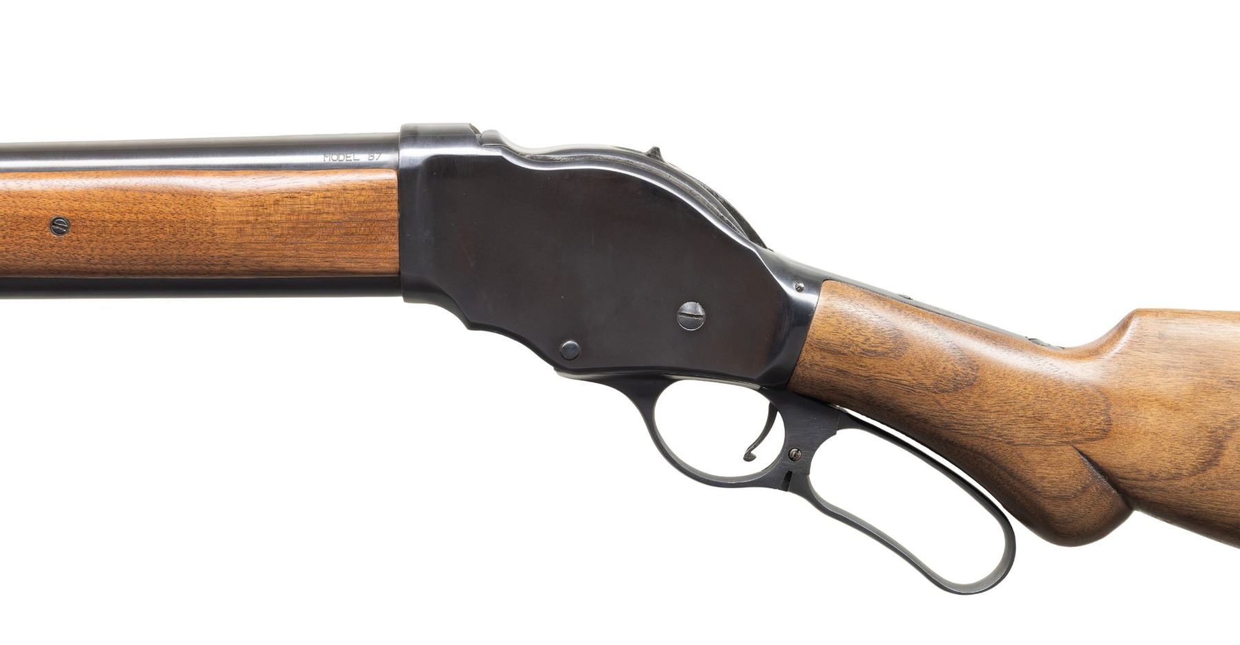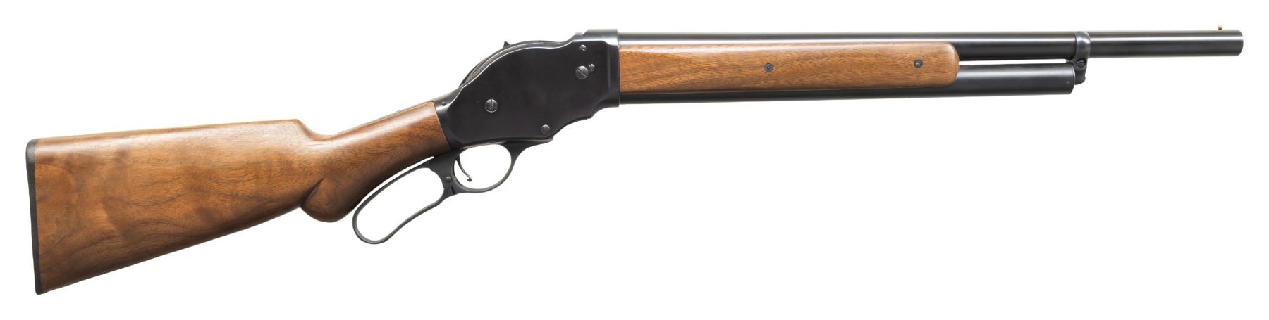 2) Norinco 87 Lever Action Shotgun. S# 0501871 . Bbl. 20". Bead front sight. Chinese made replica of the 1887 Winchester shotgun. Tang has IAC import marking. Blued finish. Walnut stock set. CONDITION: stock set & metal show light handling marks & wear. Action functions properly when hand cycled. Near excellent bright bore. PROVENANCE: From the PMRB Collection. (25-5956/MJC). BOTH MODERN. $500-900 for lot.