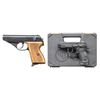 1) Commemorative Mauser HSC Semi Auto Pistol. Cal. 9mm Kurz (380 ACP. S# 4702. Bbl. 3 1/4". Standard HSC sights. Number 4702 out of 5000 Commemorative HSC pistols. Slide has US Eagle seal. Blued finish. Checkered walnut grips. MAGS: 1-8 rd. CONDITION: grips show some light handling marks. Metal retains 98% original blue with some light handling & edge wear. Action functions properly when hand cycled. Bright near excellent bore. (25-4674/MJC).