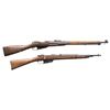 2) Finn Marked M38 Terni Carcano. S# C6886. Bbl. 19". Tall blade front sight. Fixed rear sight. Matching numbers on bbl. & stock. 1938 dated bbl. with two Finn "SA" stamps & Terni arsenal marking. Arsenal blue finish with bolt assembly having a case colored appearance. Beech stock set with left side sling provisions. Left side of butt has strong 1939 dated Terni roundel. CONDITION: stock shows scattered dings, scratches, handling marks & some finish loss. Metal retains 90% arsenal blue with scattered fading, light oxidation, edge wear, a few dings & handling marks. Action functions properly when hand cycled. Very good bright bore with strong rifling. PROVENANCE: From the PMRB Collection. (25-5835/MJC). BOTH CURIO.