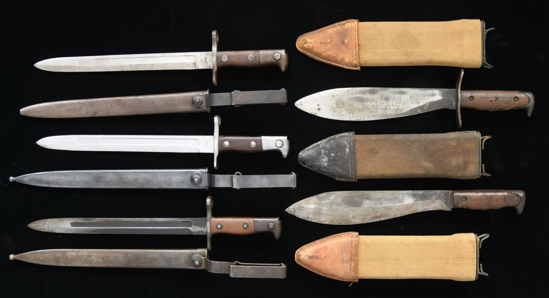 LOT OF US BOLO KNIVES & KRAG BAYONETS.