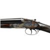 LIGHT GAME GUN BY SOME OF THE BEST CRAFTSMEN, WITH CASE. Cal. 12 Ga., 2 1/2" S# 27820. Chopper lump bbls. measure 28" and are fitted with narrow, deeply swamped game rib engraved "J. Purdey & Sons. Audley House. South Audley Street. London, England." Bbl. flats are stamped with 1974 London nitro proofs for 2 1/2" chambers. Bottoms of bbls. are stamped with serial numbers and barrel makers initials "A.H" (Alf Harvey, longtime Purdey craftsman). Tube numbers "72879" and "72880" are on loop. Dark casehardened Beesley patent self-opening sidelock action features automatic safety (SAFE inlaid in gold), bushed strikers, raised rib tumbler end cocking indicators, and double triggers. Action and lockplates are engraved with near full coverage Purdey house style rose and scroll which is very cleanly and attractively executed. Blued trigger guard with usual open scroll on bow has serial number on tang. Dark well-marbled European walnut straight grip buttstock measures 14 1/8" over checkered wood butt, and features typical Purdey drop points and point pattern checkering at grip. Individual silver letters "D J" are inlet into toeline. Factory records indicate that these are original. Matching splinter ejector forend has Anson release. Actioner's initials "T B" (Terry Barrow) are on iron. Action work is crisply filed and finished. Bore diameters: left - .734, right -.735. Restriction: left - .027 (Mod), right - .009 (IC). Minimum wall thickness: left - .032, right - .032. DAH: 2 1/8". DAC: 1 1/2". Cast about 1/2" off. WEIGHT: 6 lbs. 6 oz. UNATTACHED ACCESSORIES: brown leather motor case with stitched leather corners is embossed "D. J. J." on top. Interior is lined in burgundy cloth and has gold embossed black leather Purdey label in lid along with charge card for this gun and information label. Case contains Purdey marked round oil bottle, 2 piece beech and brass cleaning rod (still in original wrap), broken case extractor, and two keys. CONDITION: exceptionally fine, showing very little wear, and scant evidence of being fired. Bbls. retain approx.. 98% original blue, some high edge wear, and a few very light scratches. Action retains over 95% original casehardening color, thinning on fences and beads. Lockplates retain essentially all of their color. Hinge pin has over 80% temper blue, as does forend iron. Forend tip is considerably silvered. Top lever and trigger guard bow are silvered on sharp edges, blue thinning on tang. Stocks retain nearly all of their original hand rubbed oil finish with some scattered marks and light scratches. Bores are excellent, bright and shiny with no noticeable imperfections. Action is tight. Bbls. are on face. Drop is good. Case leather has a few scattered marks, and a large rub on one corner. Straps and handle are good. Interior cloth is very fine with some compressions. Paper labels are lightly soiled and foxed. A fine handling lightweight gun. A new Purdey side by side retails for over 88,000 pounds. (20-916/MGM75). MODERN. $25,000-35,000.