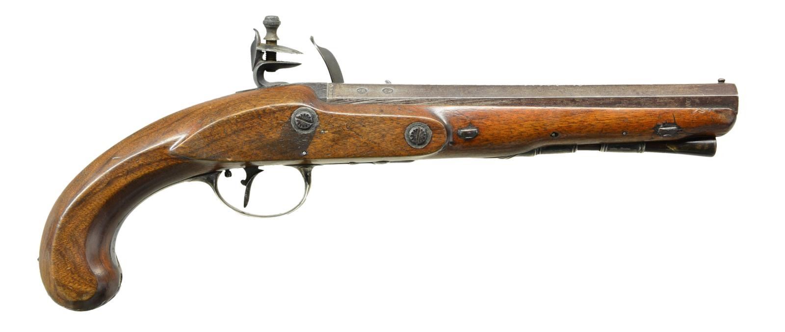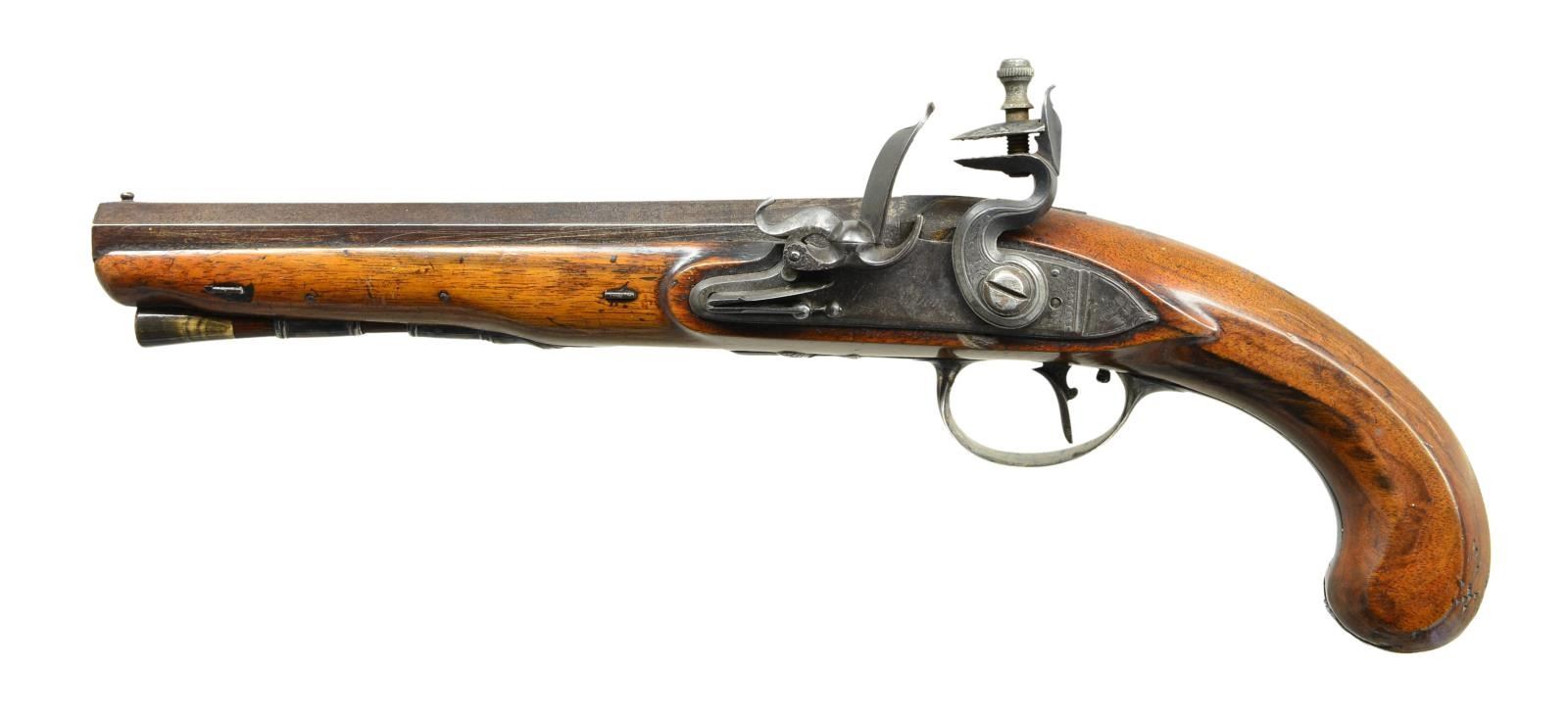 LOWE & SONS LEFT HAND FLINTLOCK HOLSTER PISTOL.