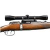 BOLT ACTION RIFLE. Cal. 270 Win. S# 5209. Bbl. 20". Ramped brass blade front sight w/ hood. Dual leaf folding rear sight. Leupold M8-4x scope on Leupold receiver mount. Scope has duplex crosshair reticle & very good optics. Austrian made rifle w/ butter knife bolt handle. Double set triggers. Wing safety on bolt & left side safety on rear of receiver. Receiver is engraved w/ light floral scroll in factory deluxe pattern. Floorplate & trigger guard also have floral engraving. Floorplate marked "STOEGER ARMS CORPORATION NEW YORK SOLE US AGENTS". Checkered walnut pistol grip stock w/ bottom mounted sling swivels, left side cheekpiece & black grip cap. Grooved black buttplate. LOP: 14". CONDITION: stock shows some light scratches & scattered handling marks. Metal retains 95% blue finish. Bright near excellent bore. PROVENANCE: The Collection of Gun Sport Ltd. owned by Jon R. Thomas. (23-3277/MJC). CURIO. $2,500-3,500.