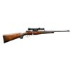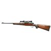 SPORTING RIFLE. Cal. 6.5x54 Mannlicher Schoenauer. S# 21535. Bbl. 18" w/ band fastened German silver blade ramp front sight & fixed U notch rear sight. R. Nosky No. 802 scope w/ dot reticle on unmarked side mt. Action features detachable rotary mag., butterknife bolt handle, 2 stage trigger & wing type safety on bolt shroud. Straight comb sporting stock of fancy European walnut. Features include shadow line cheekpiece, ebony forearm tip, steel grip cap & checkered steel trapdoor buttplate. UNATTACHED ACCESSORIES: knife, compass & matches found in trapdoor butt. CONDITION: over 70% lightly faded blue showing wear on floorplate, trigger guard & grip cap. Stock shows light wear w/ scattered handling marks. Bore is bright w/ strong rifling. Scope has clear optics. (20-2242/DS). CURIO. $700-1,100.
