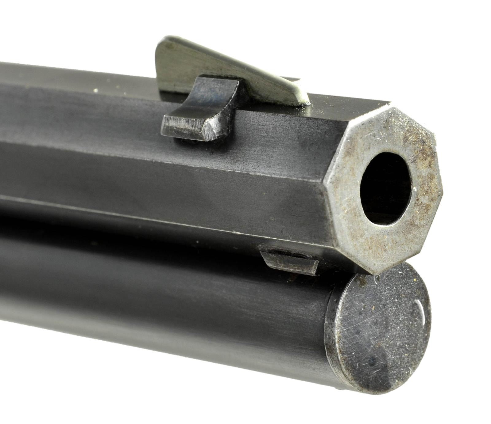 Cal. 32-40. S# 94805. Bbl. 26" oct. Full length mag. German silver blade Rocky Mountain front sight w/ elevator adj. sporting rear sight. Blue finish w/ case colored action & crescent buttplate. Forearm & S curved pistol grip stock of fancy black walnut. Style B factory checkering. Mfg. 1894. CONDITION: bbl. & mag. tube retain 90% dull lightly faded blue showing sm. spots. Action exhibits over 90% highly visible case colors. Wood retains good original finish & checkering showing scattered scratches & marks. Very good bore retains sharp rifling. (01-21201/DS). ANTIQUE. $5,000-7,500.