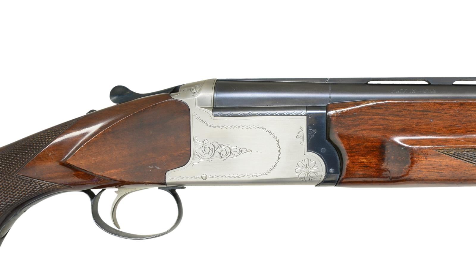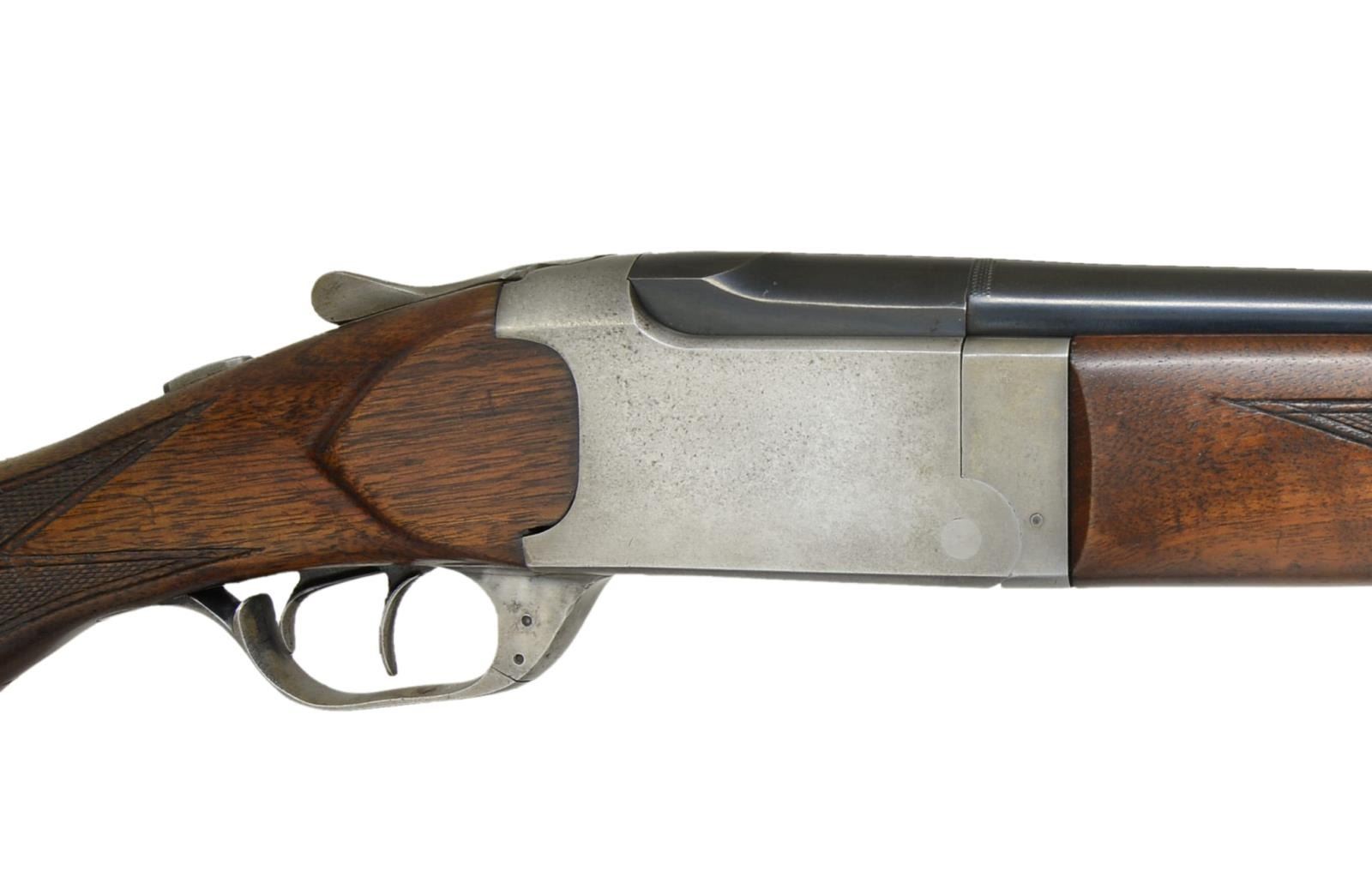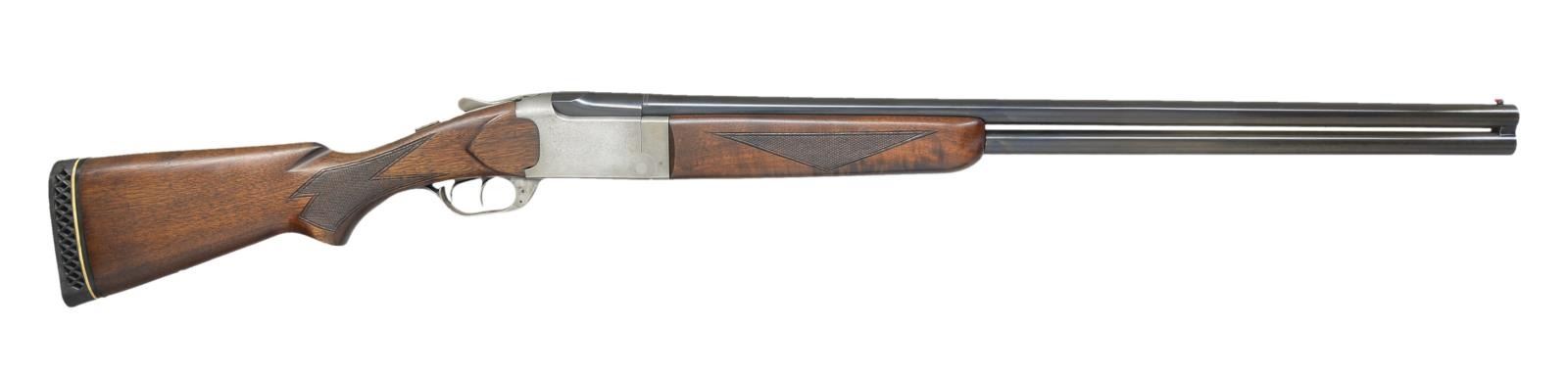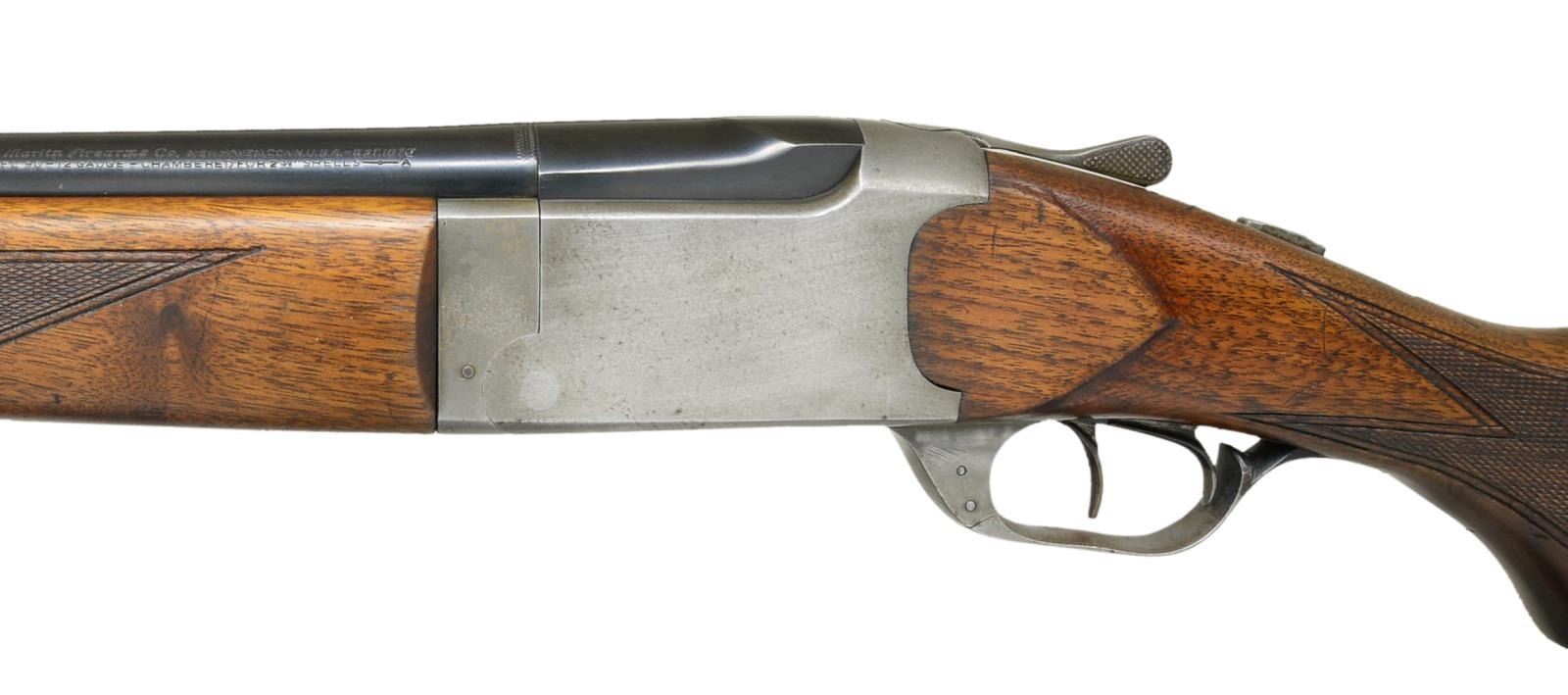 1) MARLIN MODEL 90 S# H1843. Bbls. 30" w/ matted top & red target front sight. Boxlock action w/ top tang safety, dbl. triggers, extractors. Walnut forearm & pistol grip stock have hand checkering. LOP: shortened to 14" over aftermarket White Line pad. Mfg. 1937-1958. CONDITION: 80% lightly faded bbl. blue. Receiver finish has faded to gray showing spots of light pitting. Wood has worn finish showing scratches & handling marks. Good bright bores, top bbl. has deep dent 4 3/4" from muzzle. (21-1815/DS). CURIO.