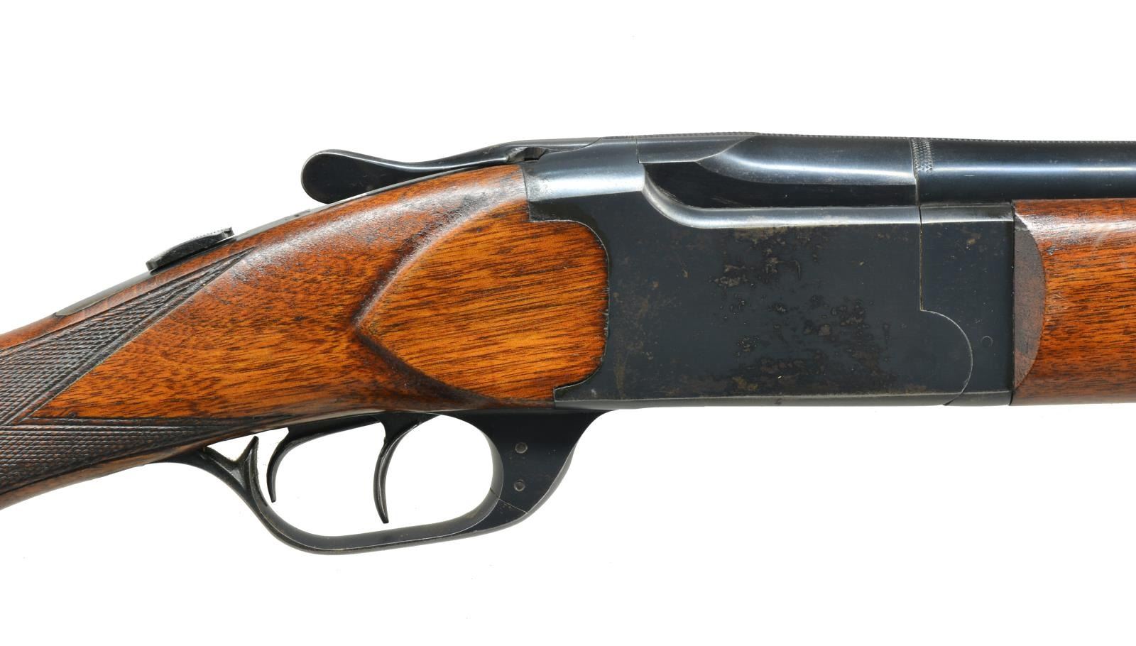 1) MARLIN MODEL 90 O/U. Cal. 16 Ga., 2 9/16". S# G1924. Bbls. 26" plain w/ matted top & open side ribs. Boxlock action w/ dbl. triggers & extractors. Walnut forearm & pistol grip stock w/ hand checkering. LOP: 14 1/2" over original buttplate. CONDITION: over 80% lightly faded blue showing spots of flaking & edge wear. Stocks have lightly worn finish showing scratches & marks. Very good bright bores. (21-3038/DS).