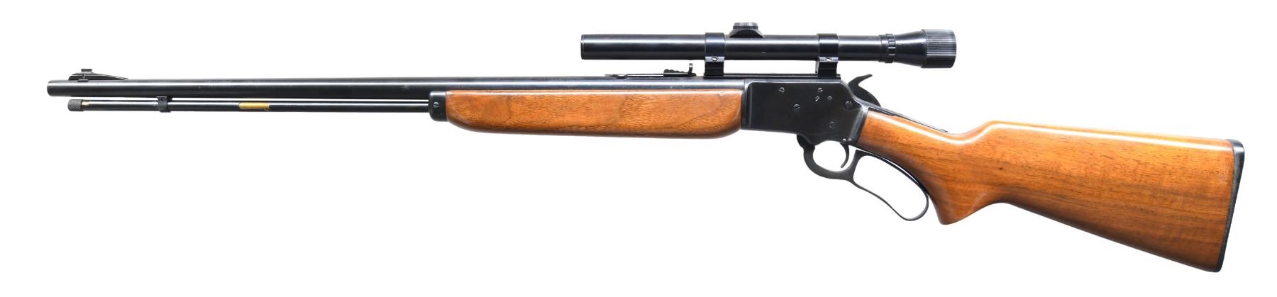 Cal. 22 S, L, LR. S# c544. Barrel 24". Sporting open sights. Weaver D6 scope with duplex reticle on Weaver rings & rail. Tubular mag. Takedown action. Walnut stock set with replacement Herter's buttplate. CONDITION: very good reblued metal finish. Good sanded & refinished wood with marks. Very good bore. Scope has good finish with lightly cloudy optics. (25-990/MD). CURIO. $300-450.