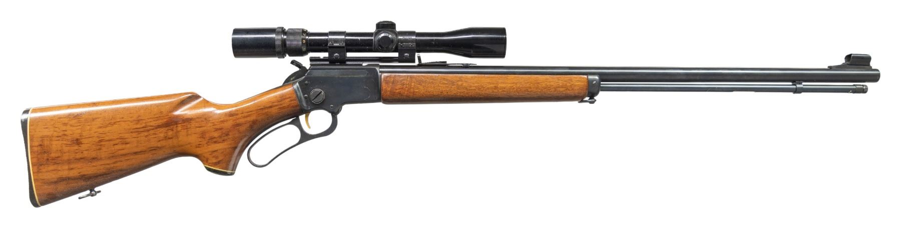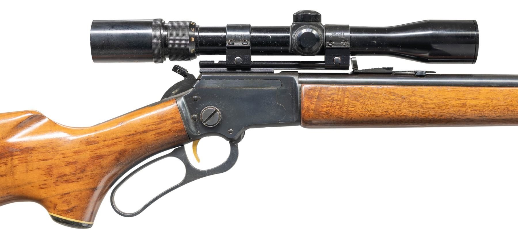 Cal. 22 S, L, LR. S# 21259001. Mfg. 1979. Micro-groove 24". Sporting sights. All-Pro 3-9x32 scope on Weaver rings & bases. Hammer extension added. Walnut stock set. CONDITION: very good metal finish. Sanded & refinished wood. Very good rifling. Very good scope finish with serviceable optics. (25-4831/MD). MODERN. $400-600.