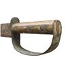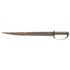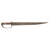 28.5" overall, 22" tapered blade, .20" thick at ricasso, riveted 2-layer brass D-guard, full tang, iron pin & brass washer attached wood slab handle. CONDITION: good overall, "as found" iron patina, point in bent & curled, scattered paint spatter. PROVENANCE: found in Texas flea market, ex-Tommy Knox collection. (02-25898/JS). NON-GUN. $1,000-2,000.