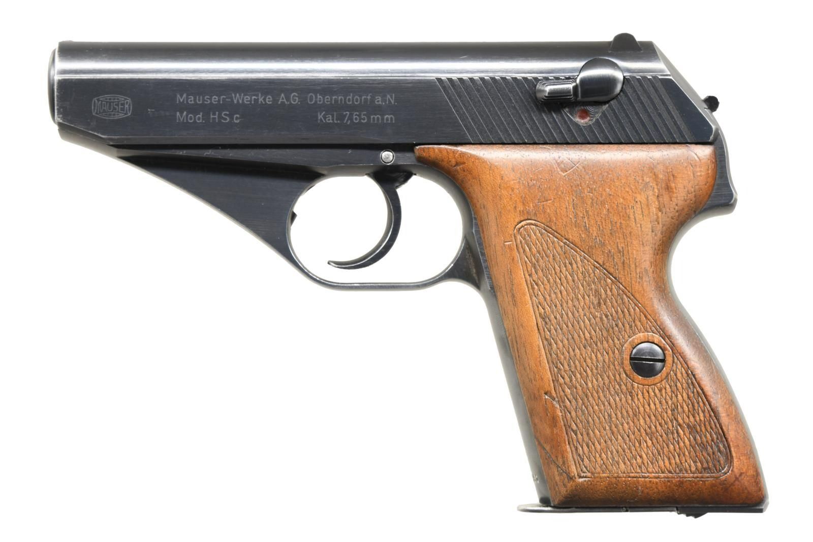Cal. 7.65mm (32 ACP). S# 759561. Bbl. 3 1/4". Blade front sight. U-notch rear sight. Blue finish. Right front of slide & right rear of trigger guard have eagle "N" commercial proofs. Grip frame is slotted for lanyard loop. Checkered hardwood grips. MAGS: 1-7 rd. CONDITION: grips show scattered dings & handling wear. Metal retains 95% original blue w/ scattered edge & handling wear. Very good bright bore. PROVENANCE: The Collection of Curtis H Halvorson. (23-5823/MJC). CURIO. $400-600.