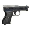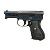 Cal. 6.35mm. S# 299. Bbl. 3". Early serial number of 299 found on frame under grips with no serial numbers found side of slide nor face of barrel. Weimar Ministry marked “DRP U AP” right side slide. Fixed sights with black plastic checkered “MAUSER” banner marked grips. MAGS: 1-9 rd. nickel finished with pitting. CONDITION: metal surfaces retain about 80% fading and thinning blue with scattered rust and impact marks. Grips are missing a section left side. Bore is fair to near good, visible rifling and pitting in the grooves. (22-3456/CW). CURIO. $300-400.