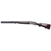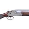 GAME GUN. Cal. 12 Ga. 2 3/4". S# 90278. The 28" demibloc bbls. fitted with matted solid rib are marked "GEBR. MERKEL SUHL" "MADE IN GDR" on left ejector housing and outlined with some shaded scroll, which is on both housings. Bottoms of bbls. are stamped with September 1974 East German Nitro proofs for 2 3/4" chambers and with 2006(?) Vienna proofs. Coin finished double kirsten O/U action without underbolts features nonautomatic safety, raised rib tumbler end cocking indicators and double triggers (front articulated) as well as hand detachable sidelocks with H&H type takedown screw on right lockplate. Action and lockplates are engraved with near full coverage very well cut large shaded scroll within zigzag borders. Triggerplate is stamped with Suhl blacksmith logo. Blued steel trigger guard has matching scroll on bow. Very nicely marbled and lightly figured dark European walnut capped pistol grip buttstock measures 14 3/8" over thin black rifle pad. Stock features small shadowline right hand cheekpiece, point pattern grip checkering, and sling loop on forend, matching that soldered to bottom of bbl. Matching splinter 3 piece forend has Deeley release. MEASUREMENTS: BBLS: Bore Diameter: T .722", B .721". Restriction: T .042" (EXTRA FULL), B .027" (MOD). Min. Wall Thickness: T .034", B .036". STOCK: DAH: 2 3/8+". DAC: 1 3/8+". LOP: 14 3/8". CAST: neutral. WEIGHT: 7 lb. 9 oz. UNATTACHED ACCESSORIES: black plastic case. CONDITION: very fine. Bbls. retaining 85-90% original blue, silvered on sharp edges of rib with some fading overall. Action retains nearly all of its coin finish with some slight darkening on bottom. Trigger guard has some spotting on bow and light silvering on tang. Top lever thumbpiece is silvered. Stocks have a good number of marks and dings in their original oil finish with some deeper marks on face of cheekpiece and right side of butt above sling loop. Bores are bright and shiny, without noted problems. Action is tight. Mechanically fine. Ejectors in time. (22-4879/MGM). CURIO. $3,000-5,000.