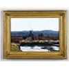 "NORTHERN CAMP". Oil on artist board depicting an encampment by a pond with mountains in the background. Signed lower left with "©" and titled on verso. Housed in a gold molded frame. SIZE: overall 19 1/2" x 25 1/2", site size 14" x 20". CONDITION: very good original condition. NOTE: The artist with large number of awards and other achievements. PROVENANCE: Martin Lane Historic & Western Americana Lifetime Collection. (02-21548/TG). $800-1,200.