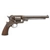 REVOLVER. Cal. 44. S# 25249. Standard configuration, 8" barrel, originally blued steel frame marked on either side: "STARR ARMS CO. NEW YORK" & "STARR'S PATENT JAN. 15, 1856". Serial numbers start at 23000 continuing the numbers from earlier double action revolver. This revolver was made in early 1863 part of 25,000 US government contract. CONDITION: good overall, original & complete, brown pitted metal, S# on cylinder is weak on cylinder. One piece grip is sound with no visible inspection marks. Mechanically fine, good rifled bore. (01-26920/JS). ANTIQUE. $1,000-1,500.