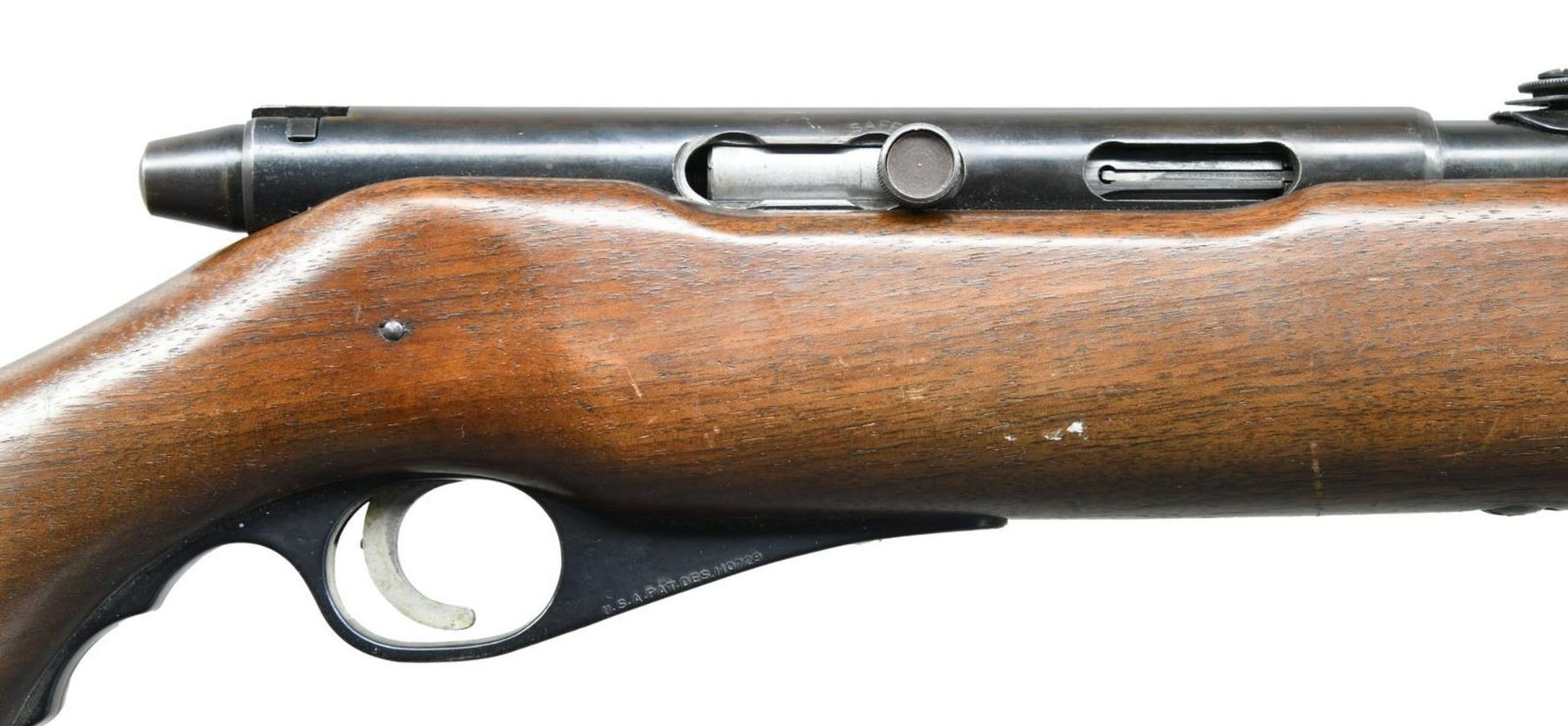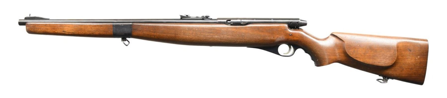 1) MOSSBERG MODEL 51M(A) SEMI-AUTOMATIC. Cal. 22 LR. NSN. Bbl 20 1/8". Model 51M(a) semi-automatic rifle manufactured by Mossberg. The top of the barrel exhibits Mossberg's address above the model and cal. designations. Metal components exhibit a blued finish. Wood buttstock with black plastic trigger guard. CONDITION: metal components exhibit wear and thinning overall that shows through to a brown patina. Mirror bore, exhibiting strong rifling throughout. Stock shows scattered marks and impressions from storage and handling, but otherwise remains sturdy and serviceable. (23-4712/MLW). 2) WINCHESTER MODEL 55 SINGLE SHOT SPORTING. Cal. 22 S, L, LR. NSN. Bbl 21 3/4". Model 55 single shot sporting rifle manufactured by Winchester between 1958-1961. The left side of the bbl. is marked with the model designation, followed by the Winchester trademark logo, and the cal. designation. Blued finish with a 1 piece smooth wood stock. CONDITION: metal components retain the vast majority of their original factory blue finish, exhibiting some spots of wear and some spots of light surface oxidation. Mirror bore, exhibiting well defined rifling throughout. Stock shows some light marks and impressions, but is otherwise very good overall. (23-4713/MLW). ALL CURIO. $300-500.