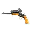Cal. 357 Mag. S# 03762. Bbl. 9.5". Rolling block single shot pistol chambered in 357 Magnum. Round / octagon blued steel barrel w/ drift adjustable front blade sight. Drilled & tapped for custom 3" Weaver rail. Case colored frame w/ brass extended trigger guard. Currently sporting Bushnell Holo-Sight utilizing 2 size "N" 1.5v batteries. CONDITION: finish illustrates very little evidence of wear, limited primarily to a few small scratches. Wood furniture has several small impressions though it's unknown if they have been added by forced antiquing. Exposed brass is naturally patinaed. Unable to verify function of sight. Bore is bright w/ sharp rifling. PROVENANCE: Estate of Frank Glenn Marsh. (22-3398/JZ). MODERN. $250-350.
