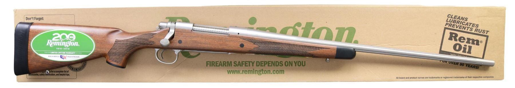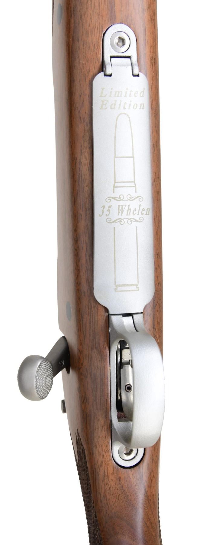 EDITION BOLT ACTION RIFLE WITH MATCHING FACTORY BOX. Cal. 35 Whelen. S# RR46954H. Bbl. 24". Model 700 CDL SF Limited Edition bolt action rifle, mfg. by Remington in 2016. Left side of the fluted bbl. is marked with Remington's mfg. information and the cal. designation, with the left side of the receiver being marked with the S#, followed by the Remington trademark logo above "MODEL 700 LIMITED". Floorplate is marked "Limited/ Edition" over a bullet and "35 Whelen". Metal components exhibit a satin stainless steel finish overall, save for on the aluminum trigger guard and floorplate, which exhibit a gray enamel type finish. Bolt body is jeweled. One-piece checkered wood pistol grip buttstock, with cheek piece and black tipped forend. Receiver is factory drilled and tapped. Bolt is matching to the receiver via "6954". UNATTACHED ACCESSORIES: matching factory box containing factory paperwork. CONDITION: near new, with metal components retaining virtually all of their original factory finishes overall. Mirror bore, exhibiting scattered spots of grease while retaining well-defined rifling throughout. Buttstock is excellent, save for a few light surface-level marks on the left side, above the trigger area. Right side of buttstock retains its factory warranty sticker. Box shows some light exterior wear from handling and storage but otherwise remains sturdy and serviceable. (24-4325/MLW). MODERN. $1,000-1,500.