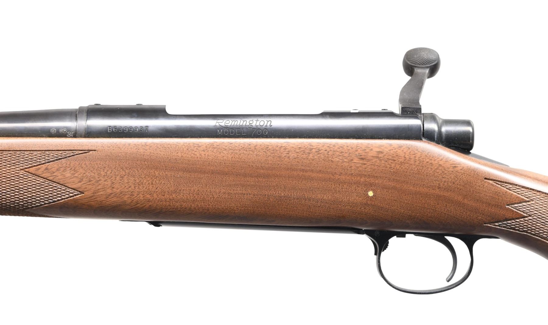 EDITION BOLT ACTION RIFLE WITH MATCHING FACTORY BOX. Cal. 257 Roberts. S# B6399937. Bbl. 24". Model 700 Classic Limited Edition bolt action rifle, mfg. by Remington in 1982. Left side of the bbl. is marked with Remington's mfg. information and the cal. designation. Left side of the receiver is marked with the S#, followed by the Remington trademark logo above "MODEL 700". Metal components exhibit a blue finish overall, save for on the aluminum trigger guard and floorplate, which exhibit a black enamel type finish. Bolt body is jeweled. One-piece checkered wood pistol grip buttstock, with Remington brown rubber recoil pad. Receiver is factory drilled and tapped. Bolt is matching to the receiver via "9937", which is electro-penciled on the body. UNATTACHED ACCESSORIES: matching factory box containing factory flyers and several 1970s vintage factory catalogs. CONDITION: near new, with metal components retaining virtually all of their original factory finishes overall. Mirror bore, exhibiting grease while retaining well-defined rifling throughout. Stock is excellent overall. Box exhibits exterior wear, with separation to the panels on the right side. (24-4318/MLW). MODERN. $1,000-1,500.