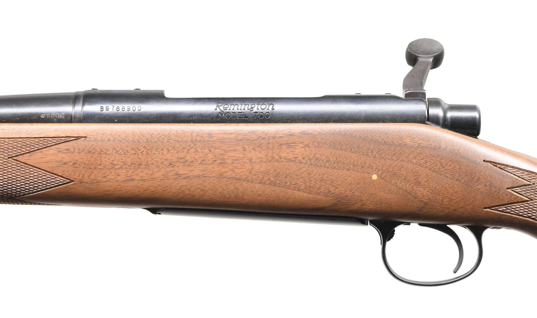 EDITION BOLT ACTION RIFLE WITH MATCHING FACTORY BOX. Cal. 264 Win. Mag. S# B6788900. Bbl. 24". Model 700 Classic Limited Edition bolt action rifle mfg. by Remington 1986. Left side of the bbl. is marked with Remington's mfg. information and the cal. designation. Left side of receiver is marked with the S#, followed by the Remington trademark logo, above "MODEL 700". Metal components exhibit a blue finish overall, save for on the aluminum trigger guard and floorplate, which exhibit a black enamel type finish. Bolt body is jeweled. Checkered wood pistol grip buttstock, with Remington brown rubber recoil pad. Receiver is factory drilled and tapped. Bolt is matching to the receiver via "8900", which is electro-penciled on the body. UNATTACHED ACCESSORIES: matching factory box, containing factory paperwork. CONDITION: near new, with metal components retaining virtually all of their original factory finishes, exhibiting a light layer of grease overall. Mirror bore, exhibiting grease, while retaining well defined rifling throughout. Wood stock is excellent overall. Box shows some exterior wear from handling and storage, but otherwise remains sturdy and serviceable. (24-4308/MLW). MODERN. $1,000-1,500.