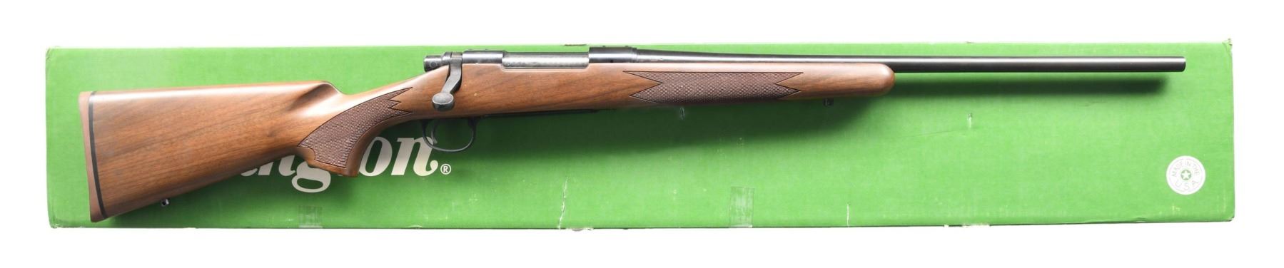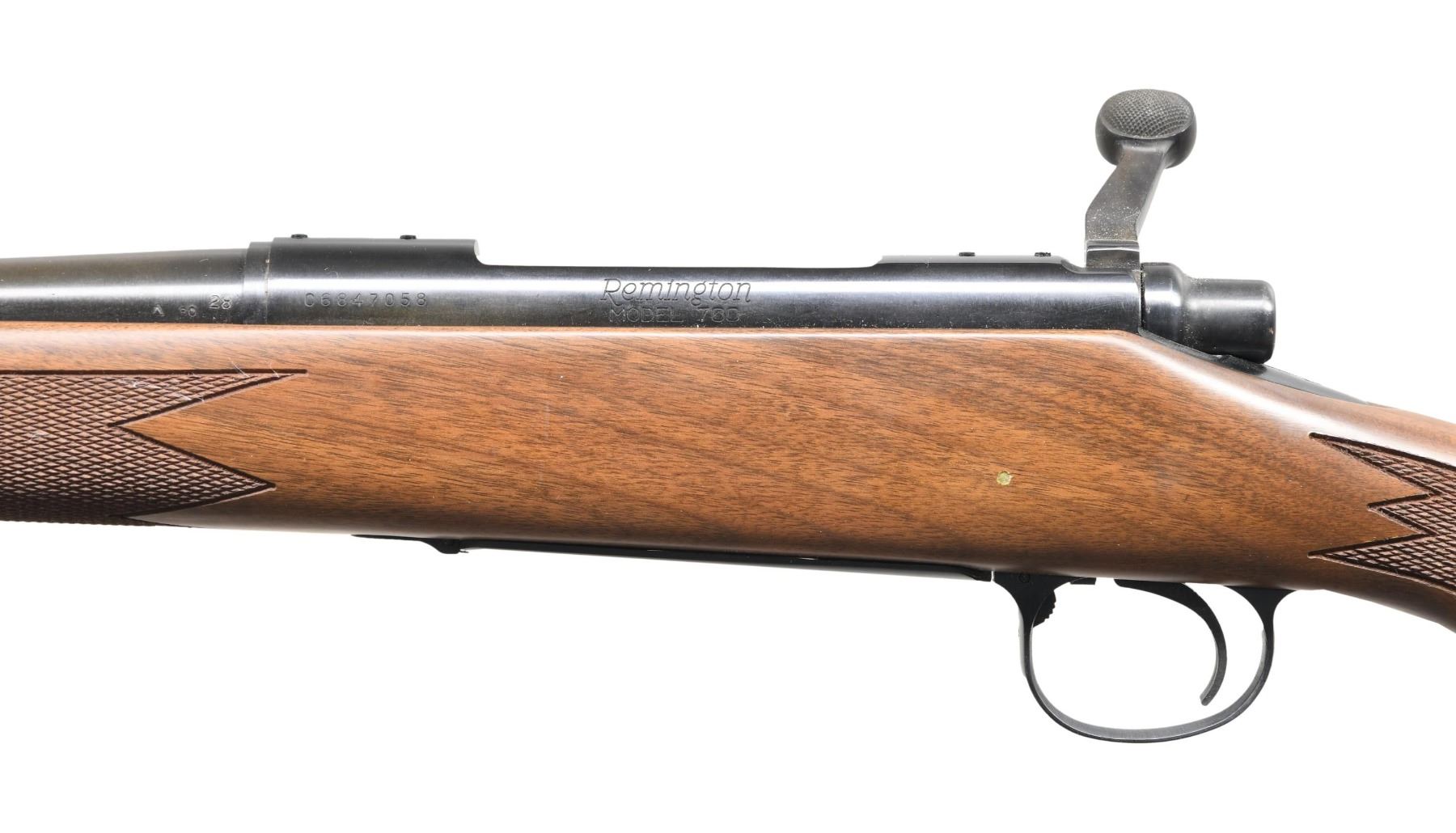 EDITION BOLT ACTION RIFLE WITH MATCHING FACTORY BOX. Cal. 6.5x55mm Swedish. S# C6847058. Bbl. 20". Model 700 Classic Limited Edition bolt action rifle, mfg. by Remington in 1994. Left side of the bbl. is marked with Remington's mfg. information and the cal. designation, with the left side of the receiver being marked with the S#, followed by the Remington trademark logo above "MODEL 700". Metal components exhibit a blue finish overall, save for on the aluminum trigger guard and hinged floorplate, which exhibit a black enamel type finish. Checkered wood pistol grip buttstock, with Remington brown rubber recoil pad. Receiver is factory drilled and tapped. Bolt is matching to the receiver via "7058". UNATTACHED ACCESSORIES: matching factory box containing factory paperwork. CONDITION: near new, with metal components retaining virtually all of their original finish, exhibiting areas of fading overall that show through to brown, which appears to be the result of the factory bluing solution, not wear or thinning. Mirror bore, exhibiting some grease while retaining well-defined rifling throughout. Stock is excellent overall, save for a few minute surface-level superficial handling marks. Box shows exterior wear from handling and storage but otherwise remains sturdy and serviceable. (24-4319/MLW). MODERN. $1,000-1,500.