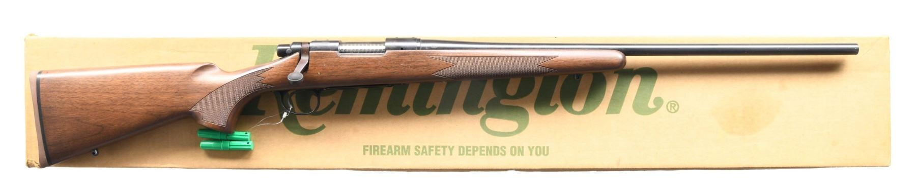 EDITION BOLT ACTION RIFLE WITH MATCHING FACTORY BOX. Cal. 7mm-08 Rem. S# E6725416. Bbl. 24". Model 700 Classic Limited Edition bolt action rifle mfg. by Remington in 2001. Left side of the bbl. is marked with Remington's mfg. information and the cal. designation, with the left side of the receiver being marked with the S#, followed by the Remington trademark logo above "MODEL 700". Metal components exhibit a blue finish overall, save for on the aluminum trigger guard and hinged floorplate, which exhibit a black enamel type finish. Bolt body is jeweled. 1-piece checkered wood pistol grip buttstock, with Remington brown rubber recoil pad. Receiver is factory drilled and tapped. Bolt is matching to the receiver via "5416". UNATTACHED ACCESSORIES: matching factory box, containing factory paperwork. CONDITION: near new, with metal components retaining virtually all of their original factory finishes overall. Mirror bore, exhibiting well defined rifling throughout. Stock is excellent overall. Box shows some light exterior wear from handling and storage, but otherwise remains sturdy and serviceable. (24-4303/MLW). MODERN. $800-1,100.