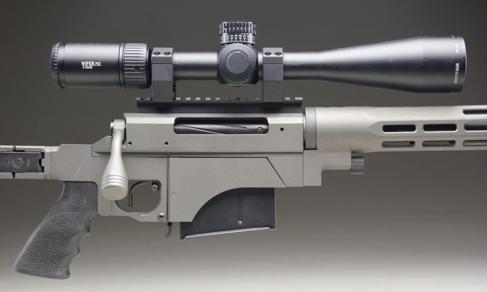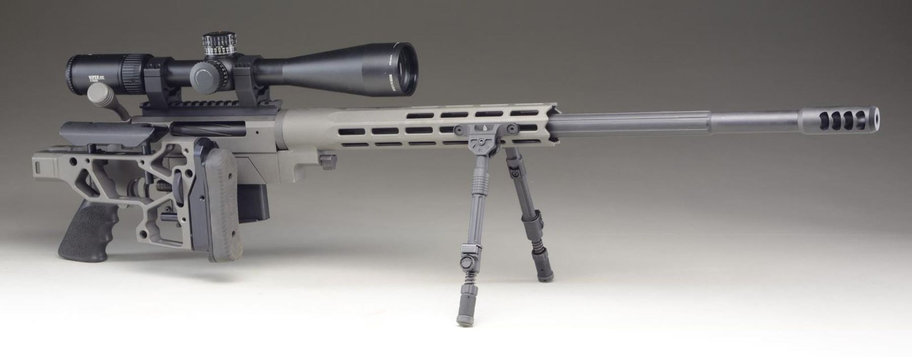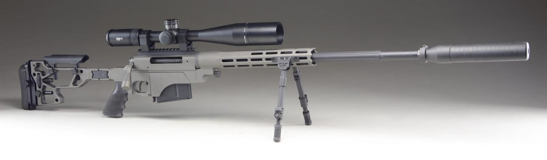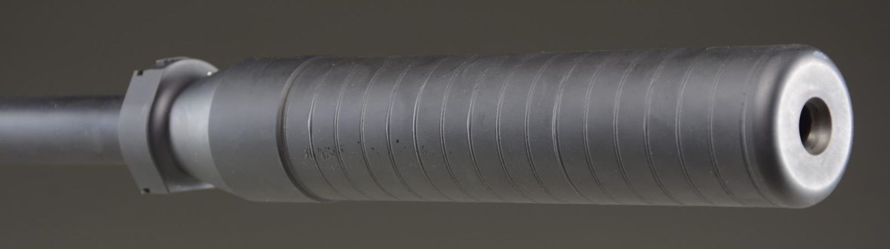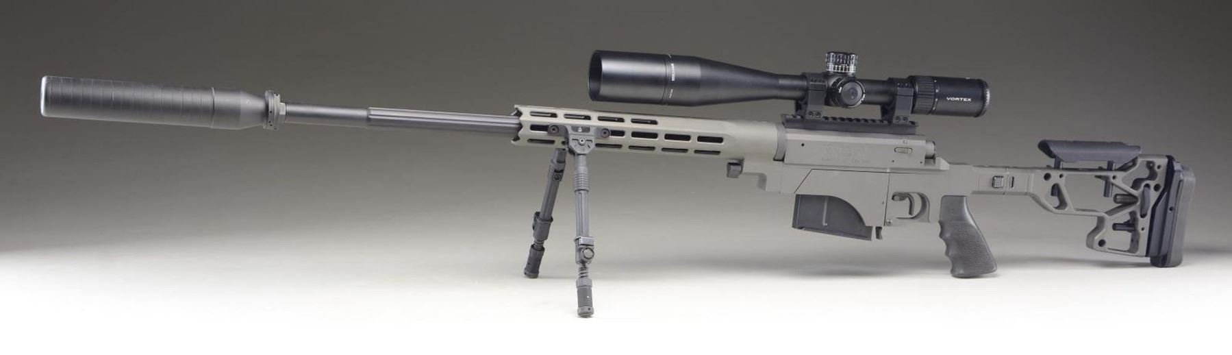 SRD338TI-QD SOUND SUPPRESSOR. Cal. 338. S# Rifle: 0129 / Suppressor: 61A050803. Bbl.24". Nemesis Arms ANSR is an advanced modular bolt action rifle system capable of changing calibers & configurations to return to zero upon assembly. This particular example is complete w/ a 20", fluted, match barrel, chambered in .308, a 24", fluted, match barrel chambered in 338 Lapua Magnum as well as a left-hand & a right-hand bolt for each caliber. The barrels are free floating when assembled into the chassis, utilizing a 12" M-LOK handguard w/ a low profile, folding, extending bipod. It has & utilizes interchangeable mag-wells that convert this rifle from a short action to a long action to coincide w/ each barrel & caliber change. Each caliber change comes w/ its own 10 rd. AI pattern metal magazine. Above the receiver is a 6.5" picatinny rail section for mounting optics, currently sporting a Vortex Viper PST 5-25x50 scope w/ target turrets. Proprietary skeletonized aluminum stock, adjustable for LOP & DOC height. 3 lb. single stage adjustable Timney trigger w/ bottom safety. Black rubber Hogue pistol grip. To complement this long distance precision package to its fullest extent, it is complete w/ a SIG Sauer Titanium SRD338TI-QD sound suppressor & 2 SRD QD muzzle brake assemblies. 1 for each barrel & caliber. At 10.5" in length, a diameter of 1.75" and only 18.9 ounces in weight, it provides an impressive level of sound suppression in a very light package. MAGS: (4 TOTAL) 2 metal 10 rd. 308 & 2 metal 338 Lapua Mag 5 rd. UNATTACHED ACCESSORIES: black plastic, fitted transport case, 2 bbls., 4 bolts, 2 SIG QD Brakes, 308 mag well & 338 mag well. CONDITION: All aspects indicate very little use. Finish is complete & consistent w/ only very light wear in the form of thinning in areas of mechanical intervention. Scope glass is clear w/ fine reticle fire control mechanism which appears to function correctly when cycled by hand. NATIONAL FIREARMS ACT SOUND SUPPRESSOR REQUIRING BATF TRANSFER BEFORE TAKING POSSESSION. FULLY TRANSFERABLE.(03-1728, 24-1894/JZ). MODERN CLASS III. $7,500-9,500