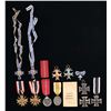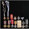 This attractive lot includes 1 Westwall medal with ribbon and issue envelope, 1 Russian Frond medal with ribbon, 2 Bronze Mother's Crosses with ribbons, 2 War Merit crosses with swords and ribbons, 1 miniature Silver Mother's cross with ribbon, 1 WWII 2nd class Iron Cross without ribbon, 1 WWI Bavarian Military Merit cross with swords and no ribbon in gilded brass, 1 WWI Bavarian Military Merit cross with swords and no ribbon in pot metal, 1 Russian Front medal ribbon only, 1 WWI 2nd class Iron Cross with ribbon, and 1 WWII 1st class Iron Cross screw back with no screw. CONDITION: all medals generally show light wear and are complete except as noted. (02-25339/BF). NON-GUN. $600-800.