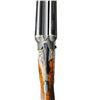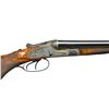 GRADE SIDELOCK GAME GUN. Cal. 20 Ga., 2 3/4". S# 64701 (CA 1899). The 30" dovetailed shoe lump barrels fitted with matted game rib are gold inlaid with maker's name and address along with engraved Krupp steel information on tops. Sides are stamped with patent numbers for Germany, England and America. Gold lines are around breech ends. Barrel flats are stamped with Imperial German proofs for 20 Ga. and with dual crowns. Sidelock top lever action features non automatic safety, dolls head third fastener, bushed strikers, clock hand cocking indicators and double triggers (front "set"). Action is engraved with near full coverage very delicately cut open scrolling acanthus which surrounds the portrait of a chamois on trigger plate. "PRIMUS" is in gold in front of trigger plate. Sidelocks have more acanthus surrounding game scenes. A doe and fawn are on left and two running hares are on right. "Sauer" is in gold at the front of each lockplate. Trigger guard has scene of flying ducks on bow. Replacement round knob buttstock of finely marbled European walnut measures 14 1/2" over checkered wood butt. Point pattern checkering is at grip. Splinter forend with original wood has Deeley release. MEASUREMENTS: BBLS: Bore Diameter: L .635". R .624". Restriction: L .018" (mod). R .003" (IC). Wall thickness: L .027". R .029". STOCK: DAH: 2 5/8". DAC: 1 3/16". CAST: neutral. LOP: 14 1/2". WEIGHT: 5 lb. 14 oz. CONDITION: very fine as completely refurbished retaining nearly all custom finishes on wood and metal. Checkering on forend recut to match buttstock. Bores are shiny with considerable pitting mostly in left barrel. Action is tight, barrels on face, mechanically good. (01-23341/MGM). ANTIQUE. $5,000-10,000.