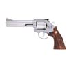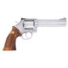 Cal. 357 Mag. S# ADY3162. Bbl. 6" with full underlug. Ramped serrated blade front sight with orange insert. Adjustable square notch rear sight with white outline. Early 1980's made no-dash 686 revolver. Stainless finish with hard chrome trigger & hammer. 6-shot cyl. Checkered hardwood target grips date 1984 with silver S&W medallions. Metal shows some light oxidation under grips, some handling marks & operational wear. Action functions properly when hand cycled. Bright near excellent bore. (25-522/MJC). MODERN. $400-600.