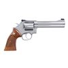Cal. 357 Mag. S# AAR5082. Bbl. 6" with full underlug. Ramped blade front sight. Adjustable square notch rear sight. Early 686 no-dash revolver made in the 1980's. Stainless finish with hard chrome hammer & trigger. Checkered walnut target grips with silver S&W medallions. UNATTACHED ACCESSORIES: unnumbered factory box with manual, paperwork, cleaning kit & screwdriver. CONDITION: grips & metal show light handling marks & operational wear. Action functions properly when hand cycled. Bright near excellent bore. (25-523/MJC). MODERN. $500-700.