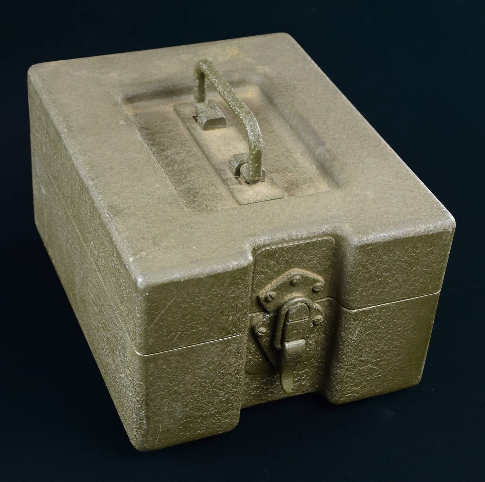 10" x 8" x 5" steel case has plaque marked " NORD AVIATION". Inside case is has lid marked "BATTERY CHECK BOX / MISSILE" w/ instructions in English. CONDITION: very good finish on exterior. Unable to test functionality. (02-19708/MD). $30-75.