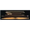 35" "Bat wing" style bow w/ red & blue painted decoration. 5 Arrows of multiple lengths & origins. CONDITION: bow in good condition. Arrows fair. (02-16220-7/JS). $300-500.