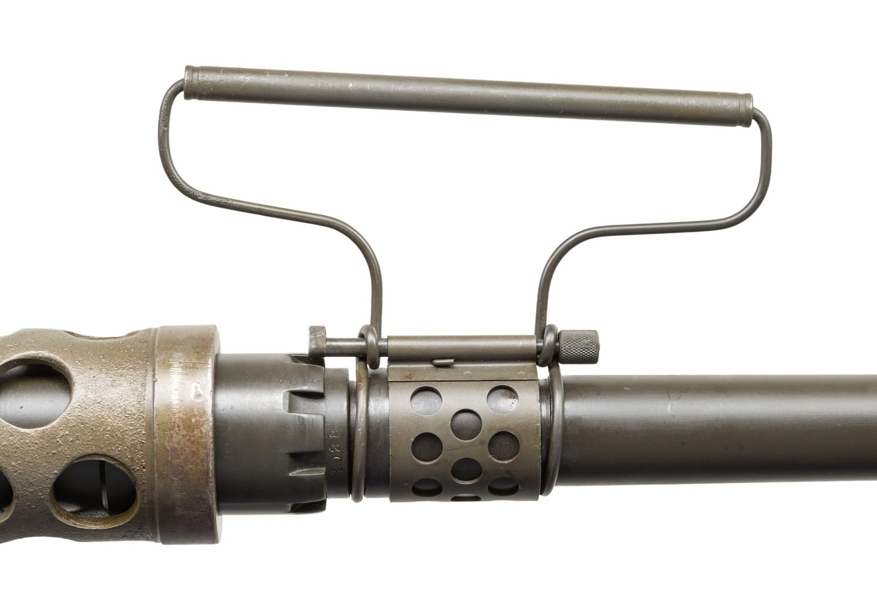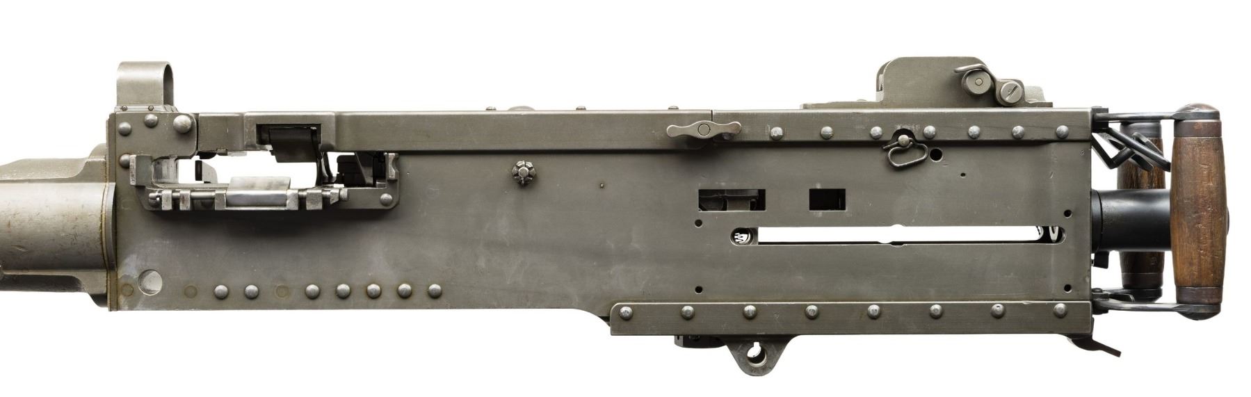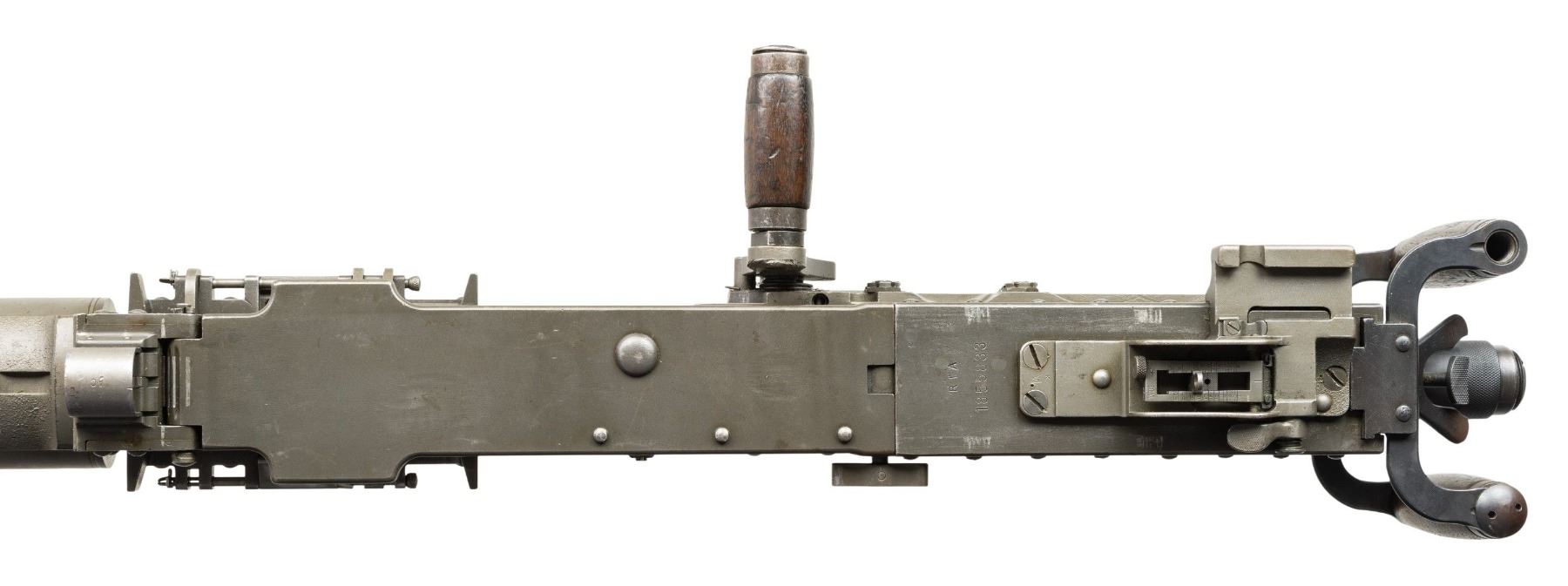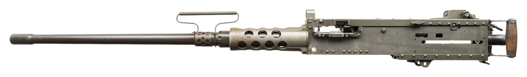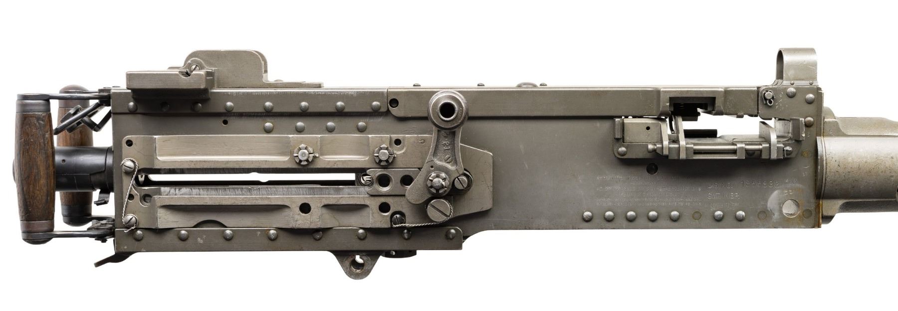 AUTO BELT FED MACHINE GUN. ***BIDDERS INTERESTED IN THIS LOT MUST CURRENTLY HOLD A TYPE 07, 08, 10, OR 11 FFL.*** Cal. 50 M2. S# 1855833. Bbl 40". Right side plate is marked "Browning Machine Gun Cal. 50 M2 / Manufactured by / AC Spark Plug Division - General Motors / Flint, Michigan U.S.A. / Patent Numbers". The right plate also carries "RIA", "EB", "ABQ" & "P" proofs. Matching number top plate with RIA. CONDITION: overall very fine with arsenal quality reparkerized finish. Very nice bright bore with nice rifling. POST 1986 DEALER SAMPLE MACHINE GUN WITH NO LAW (DEMO) LETTER REQUIRED TO TRANSFER. RESTRICTED REGISTRATION POSSESSION LIMITED TO CONTINUED COMPLIANCE WITH PROVISIONS OF PUBLIC LAW 99-308. IF YOU ARE AN 07, 08, 10, or 11 FFL/SOT YOU MAY TAKE TRANSFER OF THIS FIREARM UPON APPROVAL OF TRANSFER. PROVENANCE: Military Museum Collection of Shooters Outpost, Hooksett NH. THIS ITEM WILL BE AVAILABLE FOR PREVIEW BY APPOINTMENT AT THE SHOOTERS OUTPOST MUSEUM IN HOOKSETT, NH. TO SET UP AN APPOINTMENT, PLEASE CALL 207-453-2114. (50-1937/ZAL). MODERN CLASS III. $22,000-26,000.