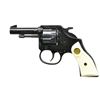 Cal. 22 Short. S# 60738. Bbl. 2.5". Small, double action rimfire revolver. Black painted finish. Fluted cylinder. Blade front & fixed rear notch sights. Serrated hammer spur. White plastic checkered grips w/ gold Omega medallions. Right side gate loading port. CONDITION: painted finish retains full coverage. Dirty bore w/ light rifling. PROVENANCE: Estate of Frank Glenn Marsh. (22-3390/JZ). MODERN. $50-100.