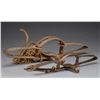 TRAP. 1) NO. 150 BEAR TRAP. 4" No. 150 plate w/ Lititz, PA address. Double spring design. 10 1/2" Spring & 9" jaws w/ offset teeth. Overall length 27". 14" Chain & swivel connecting to a 5 1/4" ring leading to 10 1/2" chain w/ a double pointed hook. Weight w/ chain & hook: 21 lbs., 9 oz. CONDITION: complete w/ strong springs showing surface rust & pitting. 2) NO. 14 WOLF TRAP. 2 3/4" Plate w/ Lititz, PA address. Double spring design. 7" Springs. 6" Jaws w/ offset teeth. Overall length: 18 3/4". 21" Chain w/ 2 3/4" ring. Weight: 3 lbs., 2 oz. CONDITION: complete w/ strong springs showing spots of surface corrosion. (02-14076/DS). $400-800.