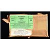 AMMUNITION. Original brick of Kynoch .500 Nitro Express (3" Case, metal covered solid bullet, 570 grain, strengthened coated steel bullet envelopes) in original paper wrapping. Brick consists of 10 boxes of 5-rds. (50 total). Original label is present on top of brick. CONDITION: paper wrapping exhibits tearing and losses. Boxes are very good, with the bottom boxes exhibiting some mild distortion. (02-19938-1/MLW). $500-1,000.