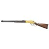 ACTION SRC. Cal. 44 Henry Rimfire. S# 156945. Barrel is 20” with barleycorn front sight and 1873 dated folding leaf carbine rear sight. Barrel has 2 line address with King’s Improvement patent markings of March 29, 1866 & October 1860. Full length magazine. Brass action and lifter with staple fastened saddle ring on left side. Case colored hammer and lever. Band fastened carbine forearm and walnut stock with steel trapdoor carbine buttplate. S# indicates 1882 manufacture. UNATTACHED ACCESSORIES: 4 piece cleaning rod held in stock compartment. CONDITION: extremely fine. Barrel and magazine tube retain over 80% strong original blue showing scattered spots of surface corrosion, light pitting or wear. All barrel markings are clear and sharp. Rear sight retains strong original blue. Receiver shows very little wear with only light handling marks and exhibits a very pleasing mild patina. Loading gate retains 80% exceptionally bright fire blue. Hammer retains over 70% vivid case colors. Lever has bright case colors on protected areas of its sides fading to gray brown patina. Trigger retains traces of colors. Incredibly, the breech bolt and firing pin retains most of their original blue along with the saddle ring and bar. Forearm has an age darkened appearance with moderately worn original finish showing dents & handling marks. Stock has good original finish exhibiting the original brown tones with scattered scratches, marks and dents. Buttplate retains 30% fading blue blending with spots of surface corrosion. Mechanics are crisp. Bright bore retains strong rifling showing scattered spots of pitting. (01-23136/DS) ANTIQUE. $15,000-25,000.